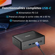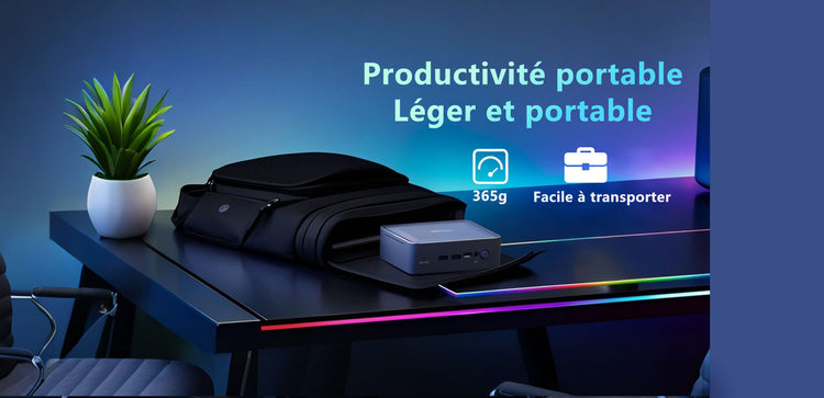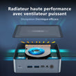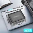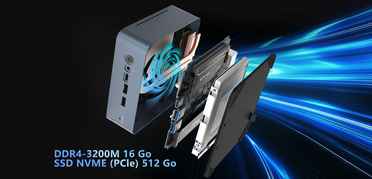 | Interface | Connecteur d'alimentation DC Jack Φ5,5 mm×1, USB 3.0×2, USB 2.0×2, RJ45 1000M×1, HDMI×2(4K,60Hz), prise audio (HP & MIC)×1, sortie vidéo Type-C×1 | Réseau | WiFi6 + BT5.2 |