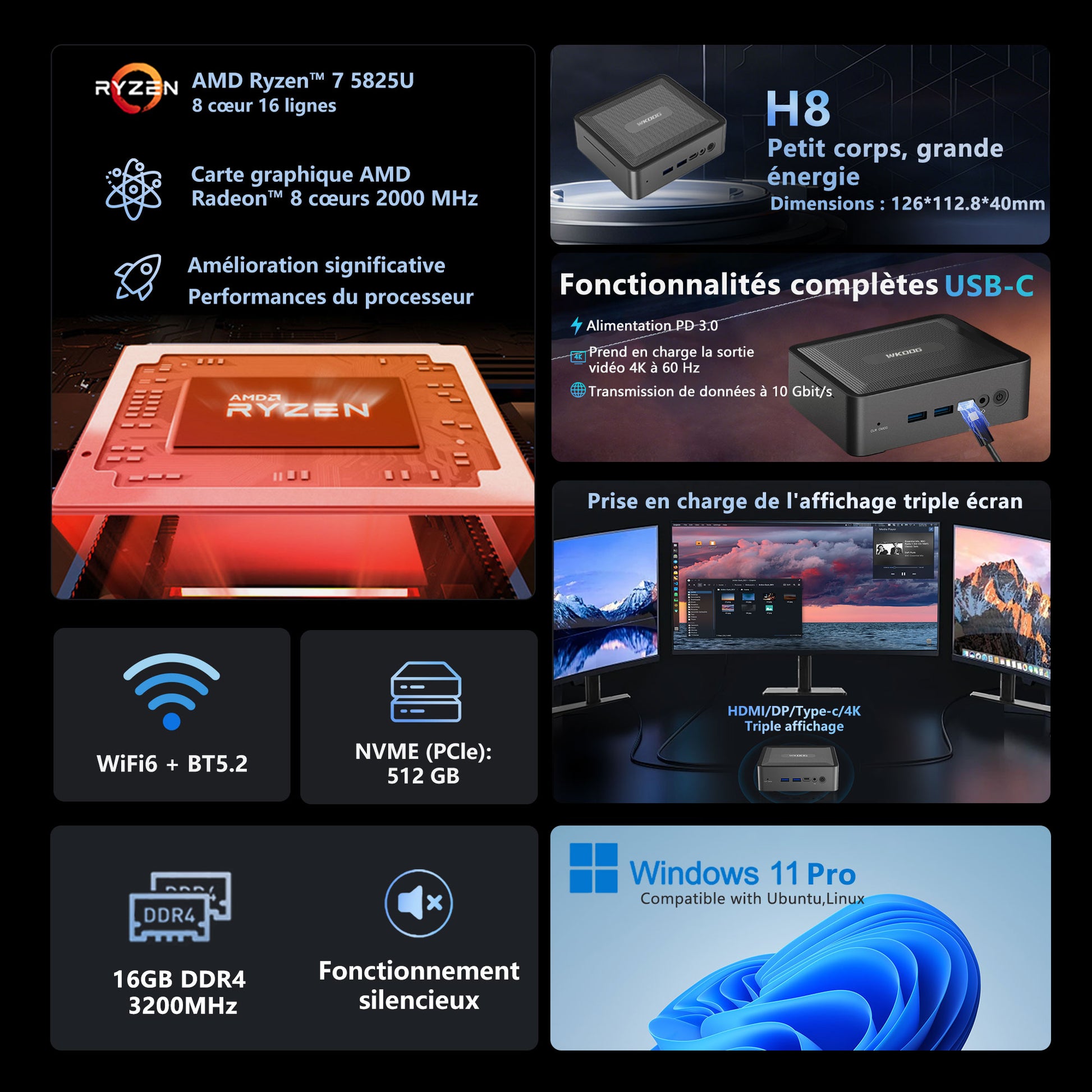Wkdog H8 Mini PC AMD Ryzen™ 7 5825U (8 core 16 lines 4.5GHz)