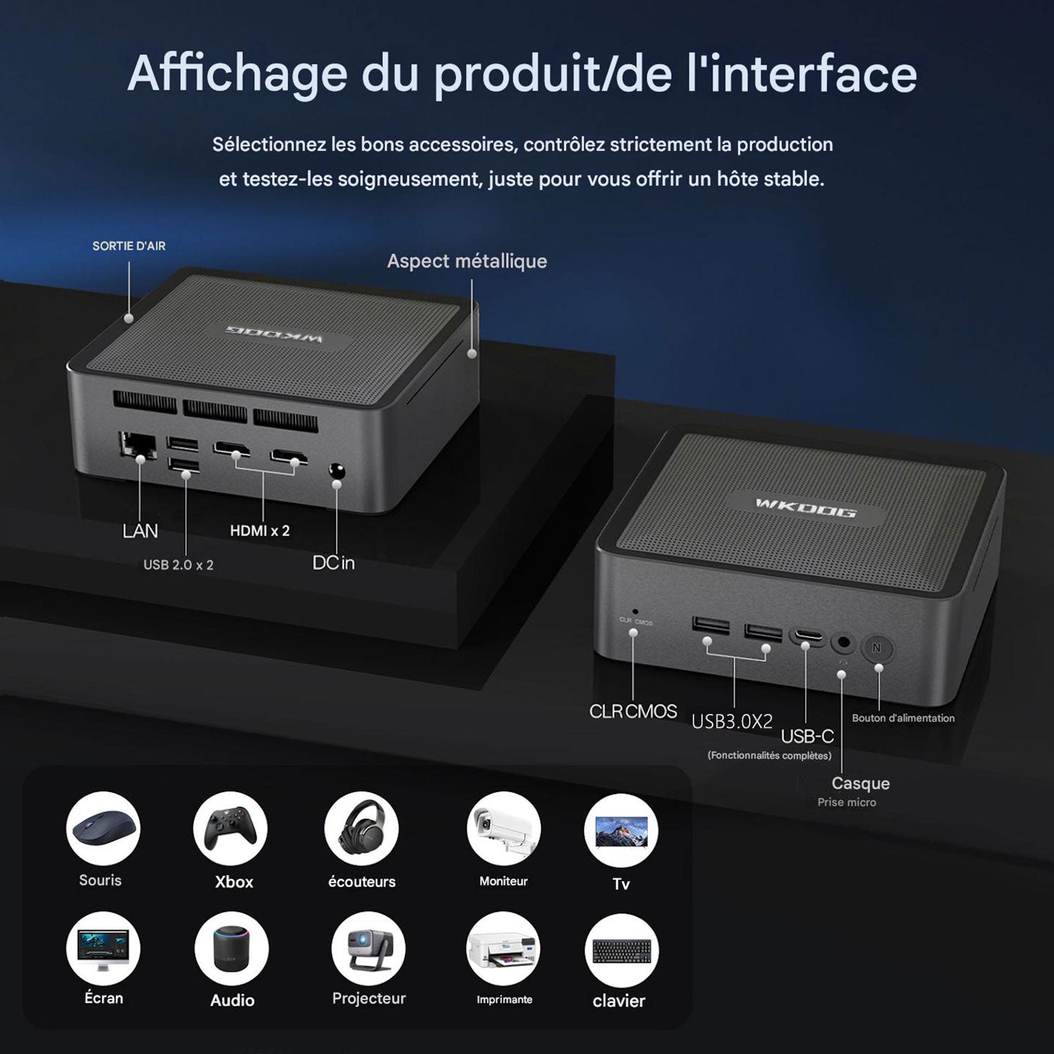 | Modèle | Wkdog MINI H8 | Graphique | Carte graphique AMD Radeon™ 8 cœurs 2000 MHz |