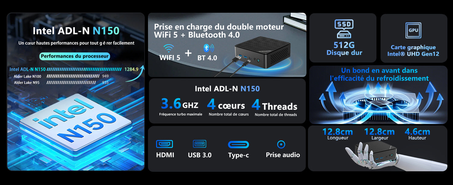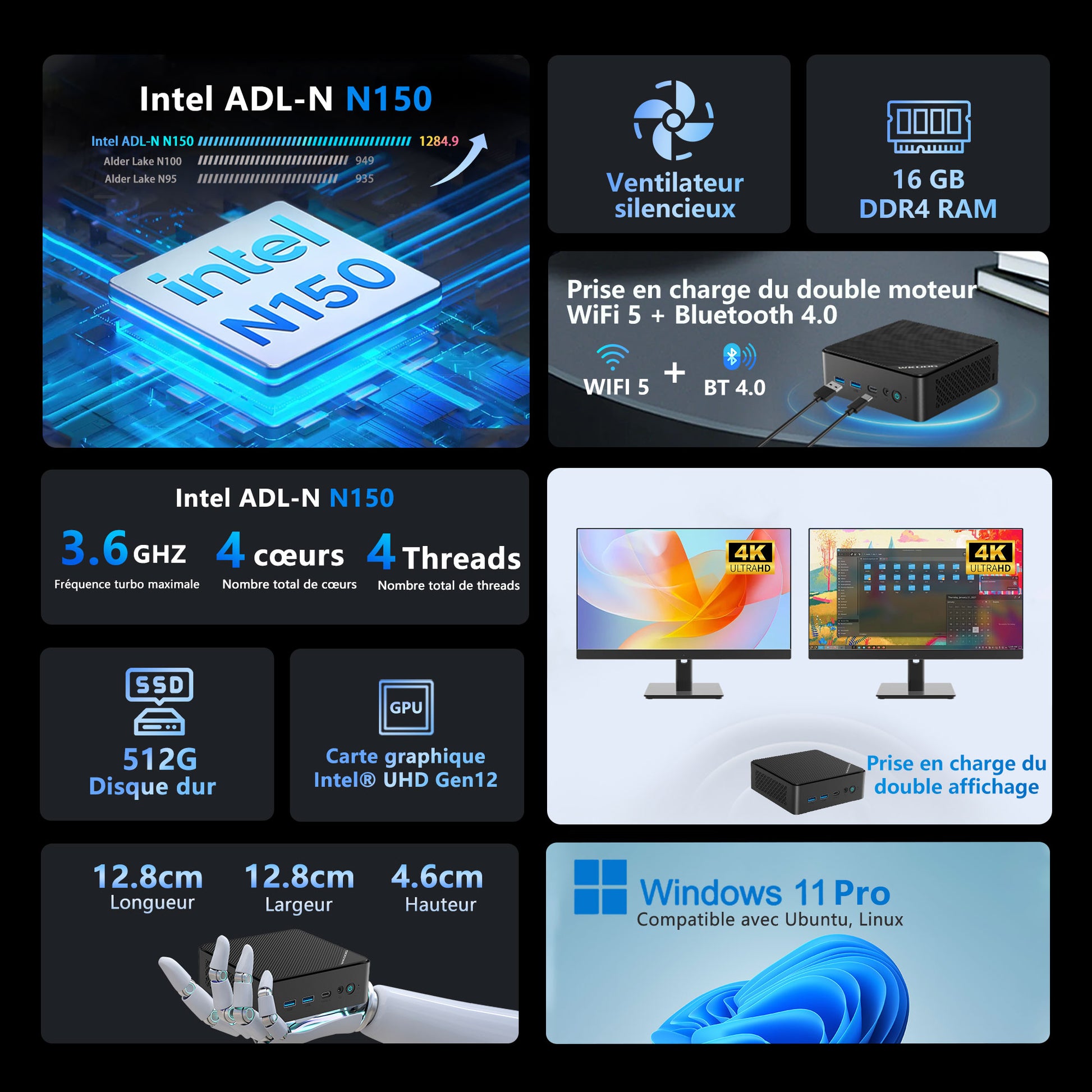 Intel ADL-N N150 (6 Mo de cache, jusqu'à 3,60 GHz)