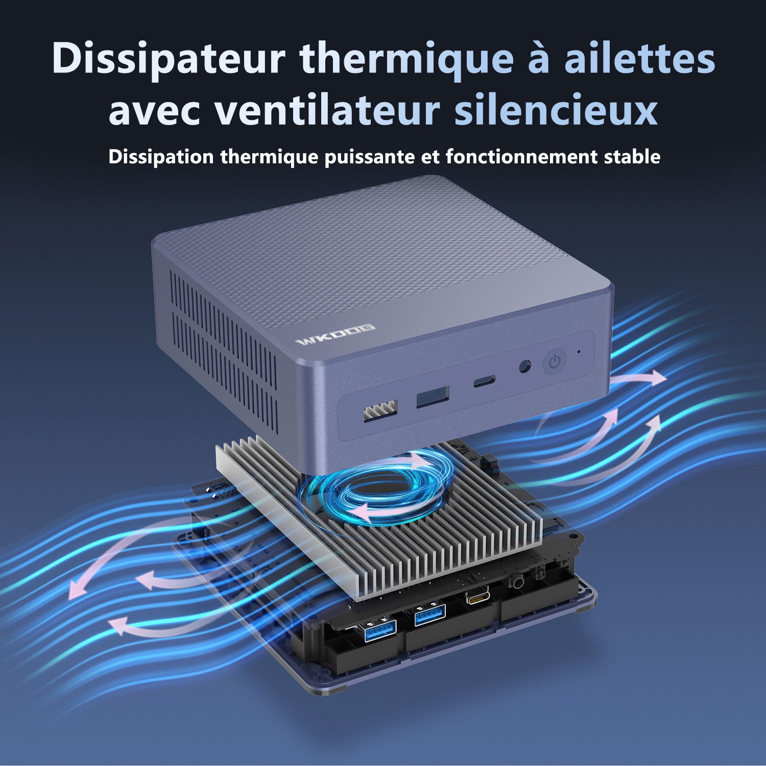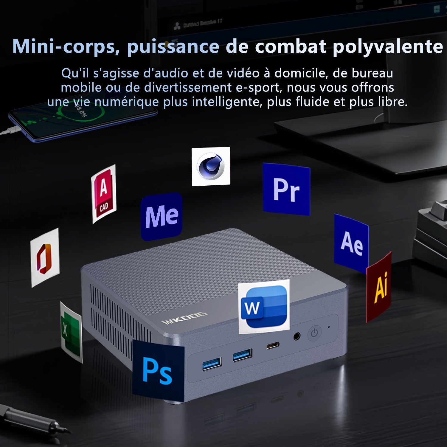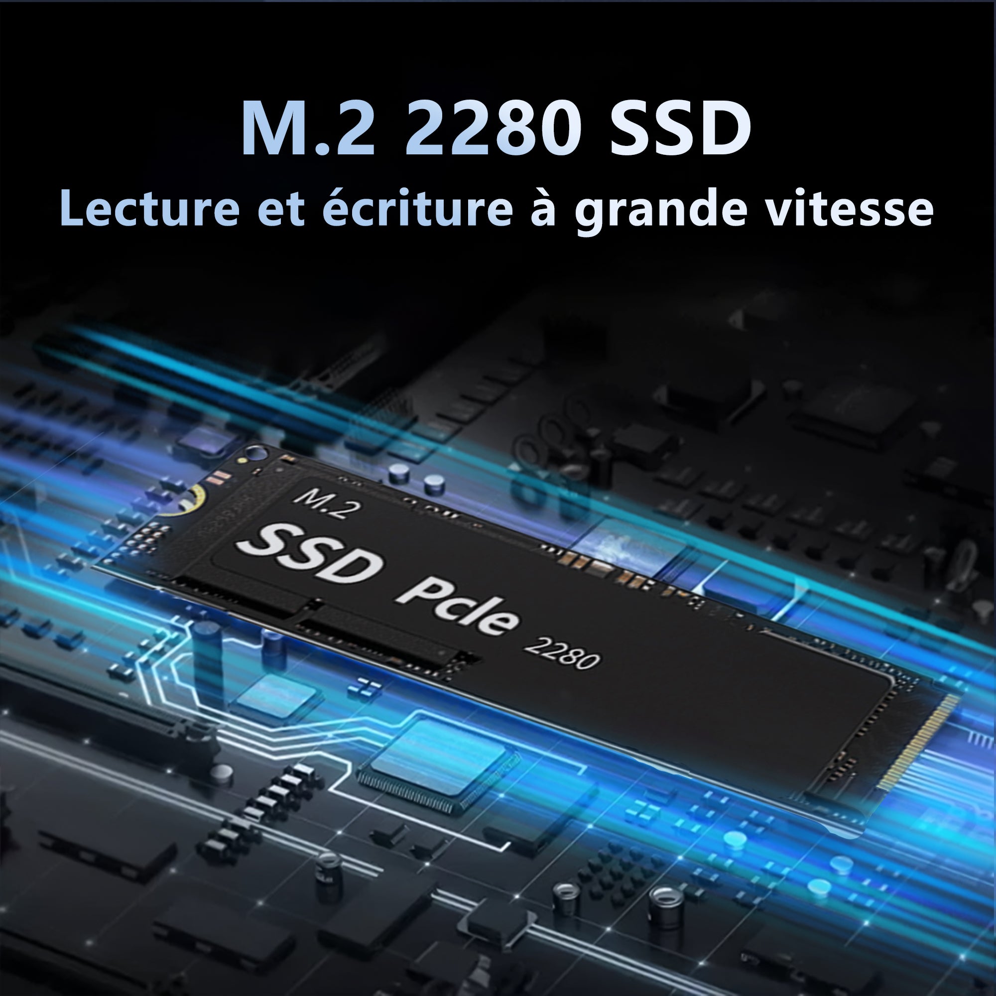 Le Mini K5 est un ordinateur compact et performant, conçu pour les utilisateurs en quête d'efficacité bureautique, de divertissement et de création légère. Sa configuration de base inclut un SSD M.2 2280 prenant en charge des vitesses de lecture et d'écriture élevées, améliorant considérablement la réactivité du système et l'efficacité des transferts de fichiers. Il gère facilement le démarrage du système, le chargement des logiciels et le traitement des fichiers volumineux. Équipé d'un processeur puissant et d'une carte graphique intégrée, le Mini K5 prend en charge le multitâche et offre un affichage fluide, répondant ainsi aux besoins quotidiens de bureautique, de divertissement audiovisuel et de création légère.
